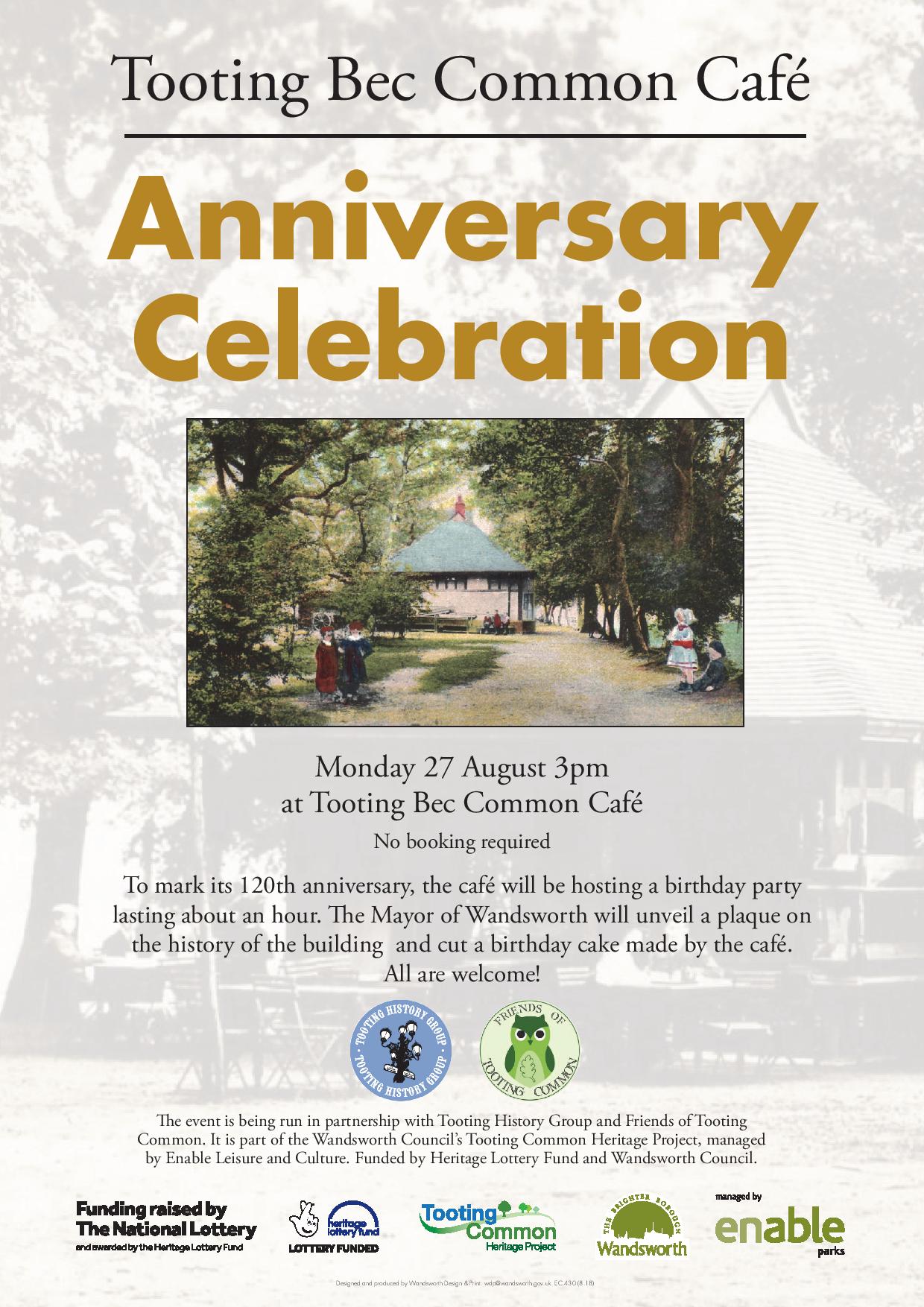 Come and join us for a celebration of 120 years of the cafe on Tooting Bec Common. Next Bank Holiday Monday, 27th August at 3pm. The Mayor of Wandsworth will cut a birthday cake.