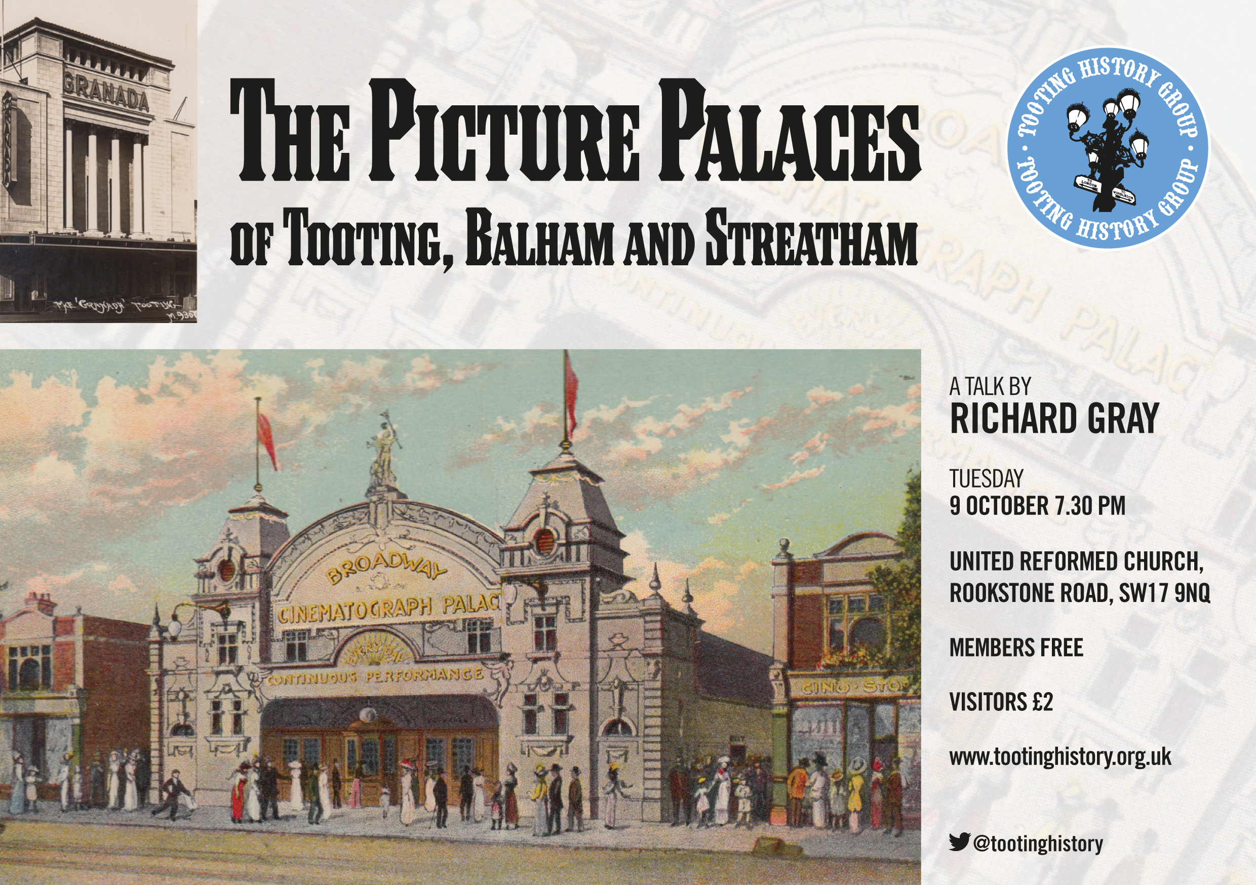 How many cinemas did there use to be in Tooting? Which Tooting Cinema is Grade 1 listed, the only cinema in Britain to be rated this highly? Come and hear about the heyday of cinemas in Tooting from Richard Gray of the Cinema Theatre Association at our October monthly meeting. The talk is on Tuesday October 9th at 7.30pm at The United Reform Church, Rookstone Road, SW17. You can find more information about the Cinema Theatre Association here.