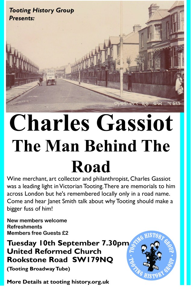 Wine merchant, art collector and philanthropist, Charles Gassiot was a leading light in Victorian Tooting. There are memorials to him across London but he’s remembered locally only in a road name. Come and hear Janet Smith talk on why Tooting should make a bigger fuss of him!