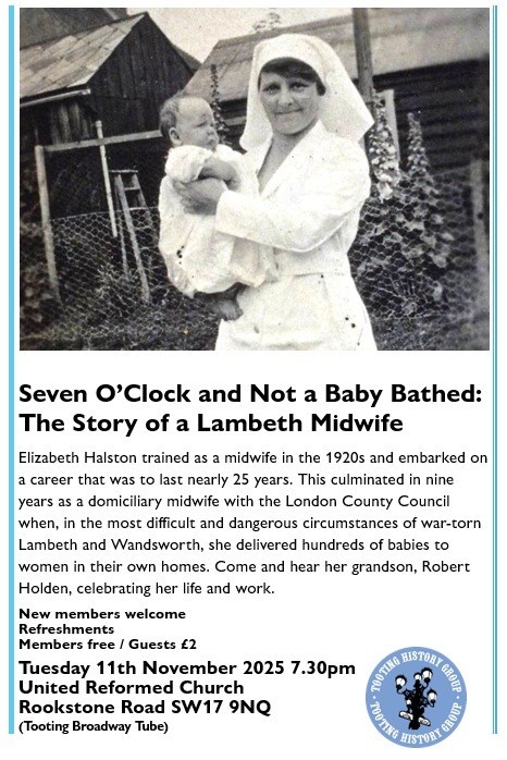 Elizabeth Halston trained as a midwife in the 1920s and embarked on a career that was to last nearly 25 years. This culminated in nine years as a domiciliary midwife with the London County Council when, in the most difficult and dangerous circumstances of war-torn Lambeth and Wandsworth, she delivered hundreds of babies to women in their own homes. Come and hear her grandson, Robert Holden, celebrating her life and work.