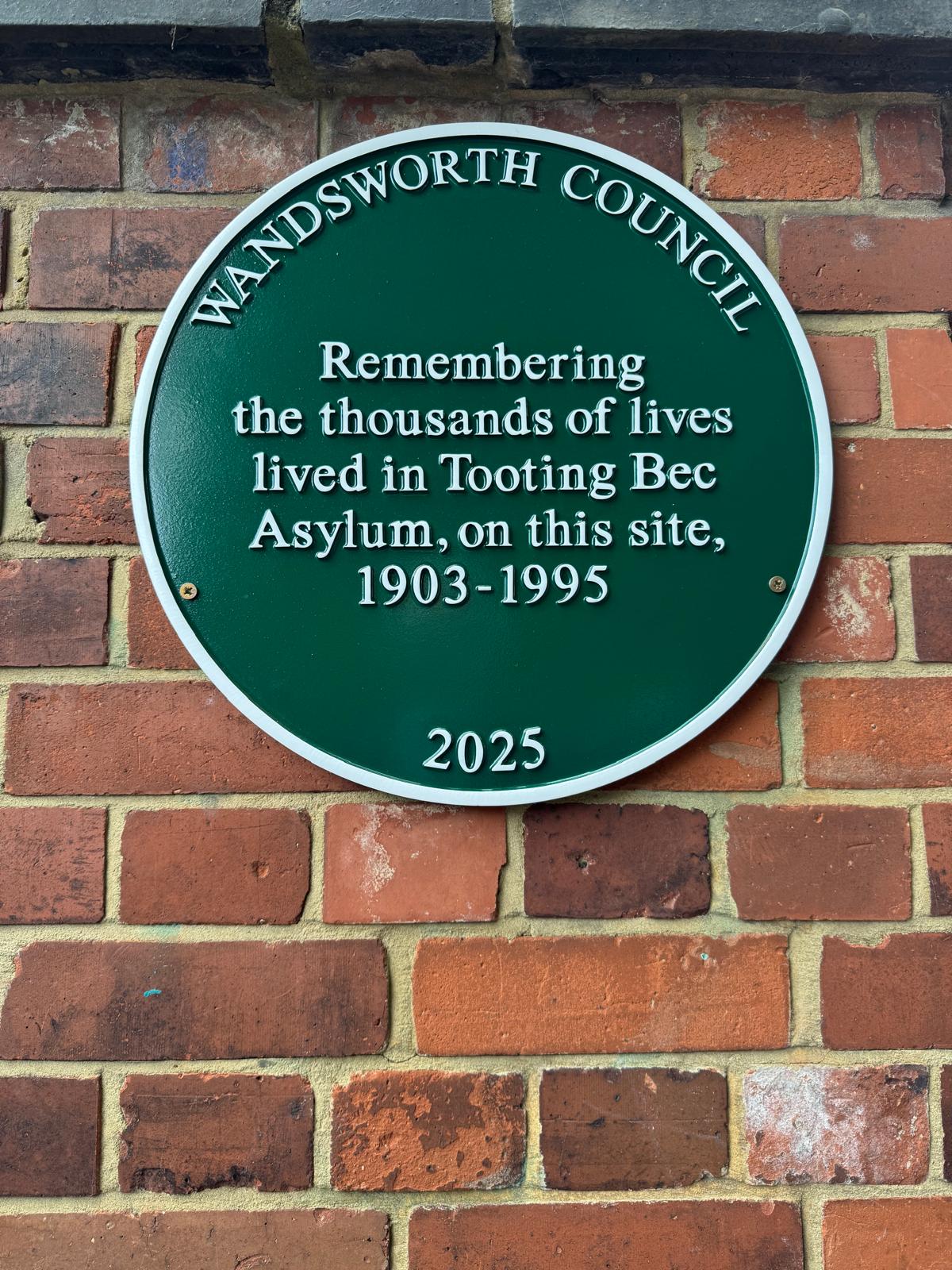 The Green Plaque will be unveiled at 2pm on Saturday 27th September 2025. Part of the original wall to the Asylum is still there, by the pedestrian entrance to the Heritage Park Estate at the corner of Tooting Bec Road